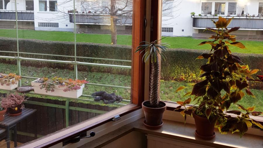 Vi har nöjet att bo i detta hus som utmärker sig med de stora perspektivfönstren i teak som ger ljuset maximalt spelutrymme, de snedställda burspråken och de rymliga balkongerna inklädda i korrugerad kopparplåt och blomsterlådor.